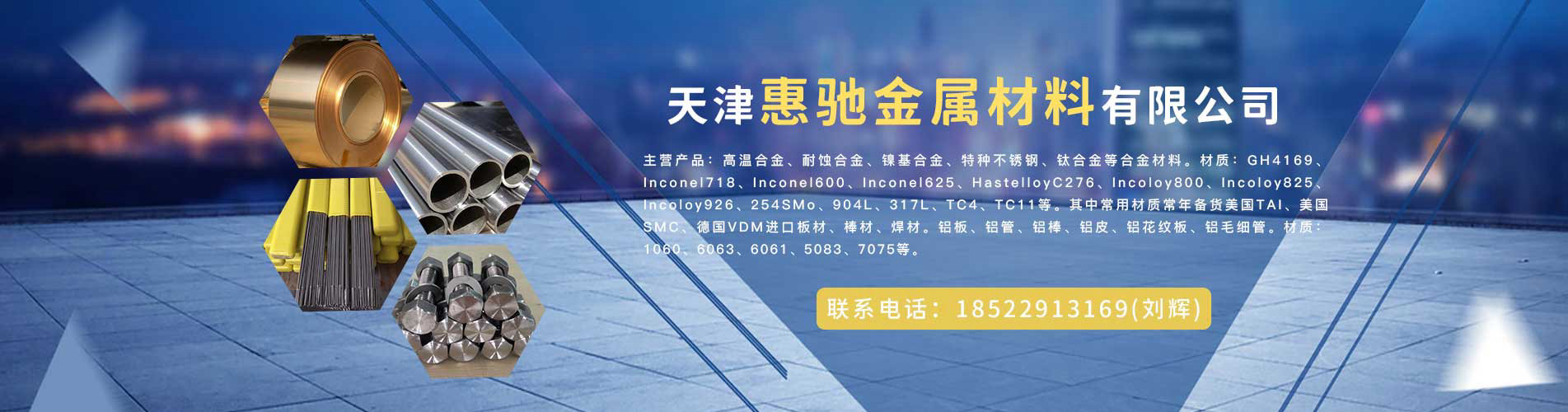 天津惠馳金屬材料有限公司是一家服務于金屬材料的專業公司。公司秉承著“專業、誠信、值得信賴”的經營理念,致力合金產品領域提供一流的產品同服務。我們多年的經驗同積累,我們的專業和不斷地創新,我們的誠信和優質服務, 得到了各行業客戶的一致肯定和好評,為企業贏得了卓越商譽。 ??